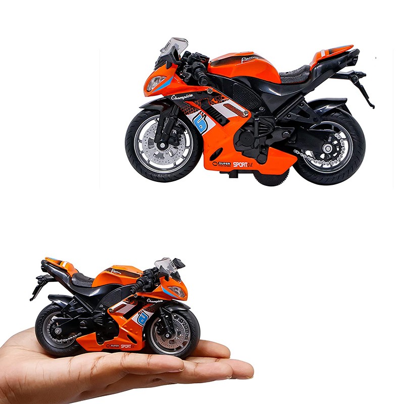 Többnyire fémötvözetből készült, és egy valódi motorkerékpár hangját utánozza. A kerékpár reflektorral van felszerelve, és visszahúzható funkcióval rendelkezik, ha azt szeretné, hogy a kerékpár magától működjön.