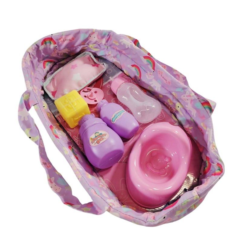 A készlet tartalmaz egy babakocsit a babák szállítására, ami még valósághűbbé és szórakoztatóbbá teszi a játékot, etetőcumisüveget a babák etetéséhez, ami lehetővé teszi a kisgyermekek számára, hogy szimulálják az etetés pillanatát, a baba gondozásának felelősségének megtanulását, vagy egy bilit, amely lehetővé teszi a gyermekek számára, hogy gyakorolják a tisztálkodási tanulási forgatókönyveket, ösztönözve az oktató és interaktív játékot.