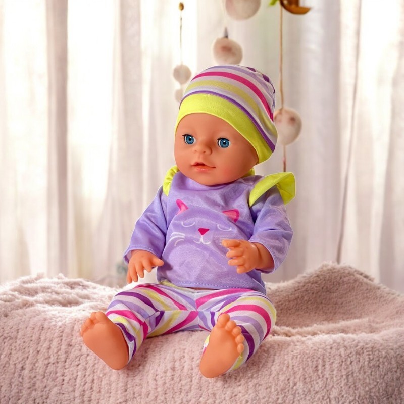 Játékbaba, 40 cm, különböző tartozékokkal, pisil, valósághű megjelenés, 3 éves kortól