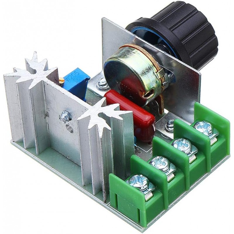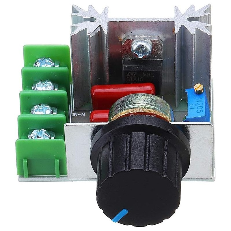 Sebességszabályozó egyfázisú motorokhoz, beépített szabályozó potenciométer, 2000W, passzív sugárzó, 230 V AC, 4,8x6x2,8 cm