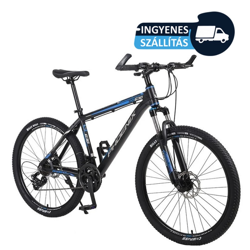 Phoenix MTB kerékpár, 26 hüvelykes kerekek, 21 sebességes Shimano, alumínium kerekek, tárcsafékek, fekete-kék