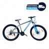 MTB kerékpár, 27,5 hüvelykes kerekek, 21 fokozat, Shimano váltó, mechanikus tárcsafék, első felfüggesztés, acél váz, 7 cm-es gumiabroncs vastagság, szürke/kék színű