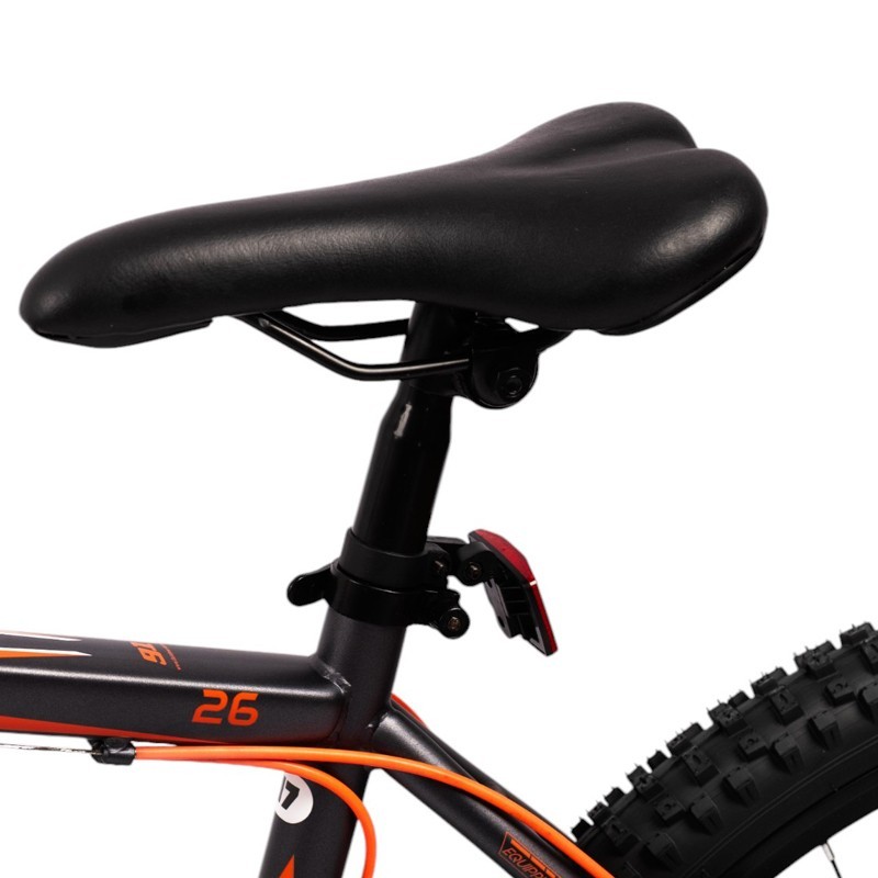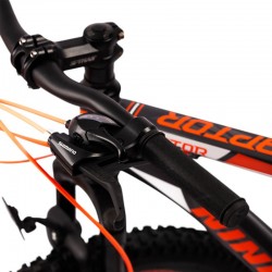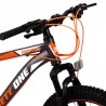 MTB kerékpár 26 hüvelyk, Shimano 21 sebességes váltó, első felfüggesztés, acél váz, alumínium felnik, fekete-narancs színű