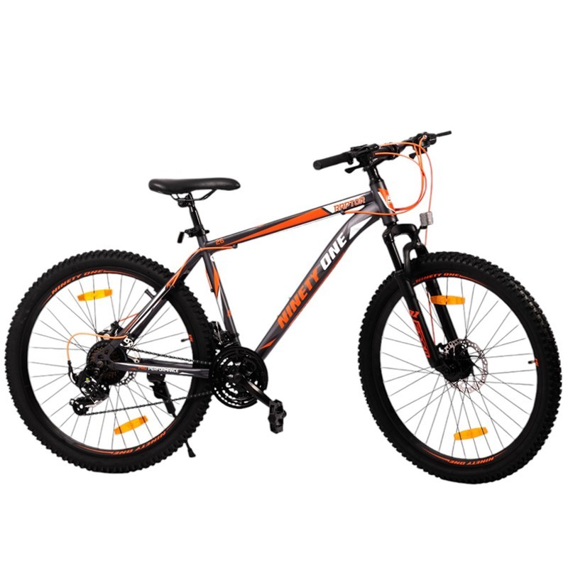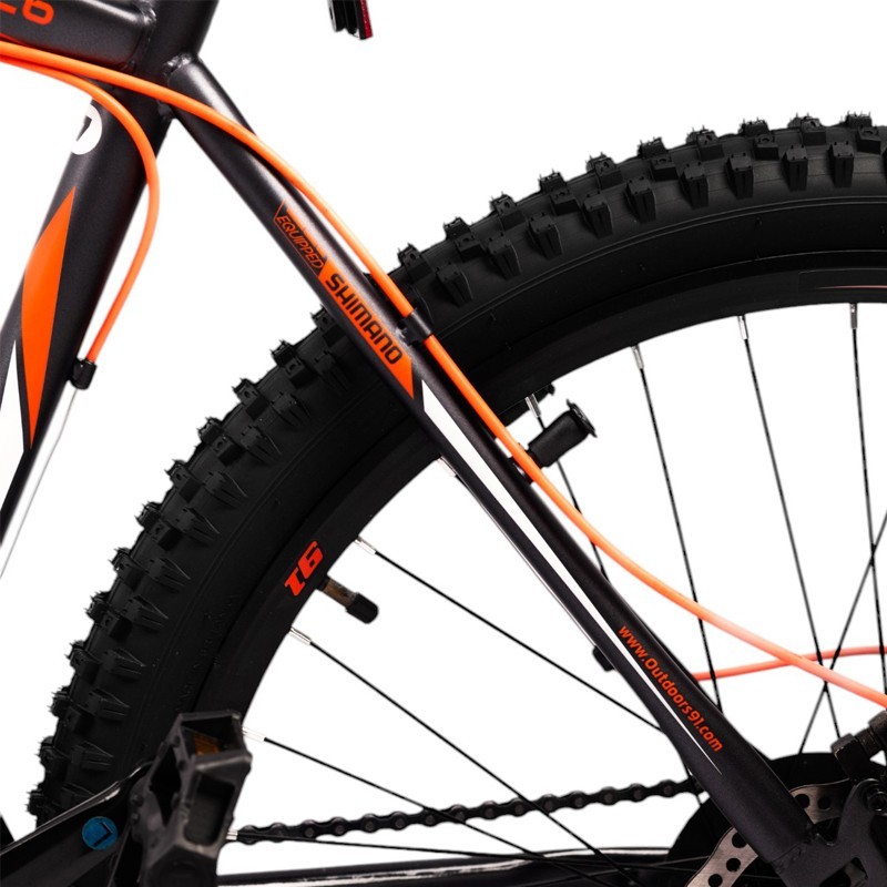MTB kerékpár 26 hüvelyk, Shimano 21 sebességes, első felfüggesztés, acél váz, alumínium felnik, tárcsafék, fekete-narancs, unisex modell