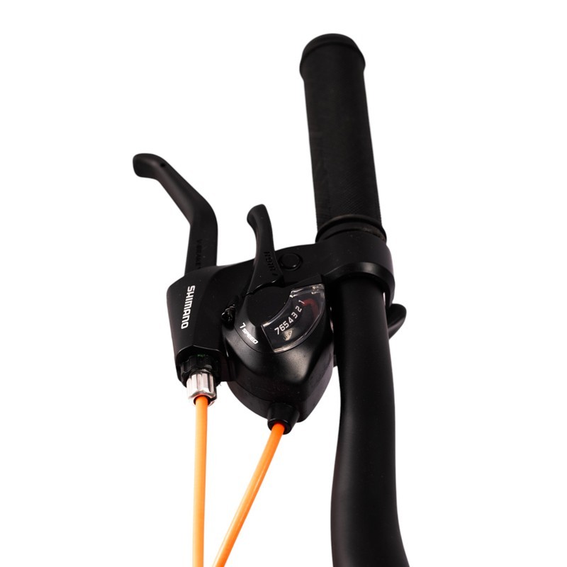 Az MTB (Mountain Bike) kerékpárt azok számára tervezték, akik a teljesítményt és a kényelmet ötvözve szeretnék felfedezni a hegyi ösvényeket, a dombos utakat vagy akár a városi túrákat. Modern, fekete és narancssárga színű kialakítása sportos és dinamikus megjelenést kölcsönöz, míg a minőségi alkatrészek biztonságos és élvezetes élményt garantálnak.