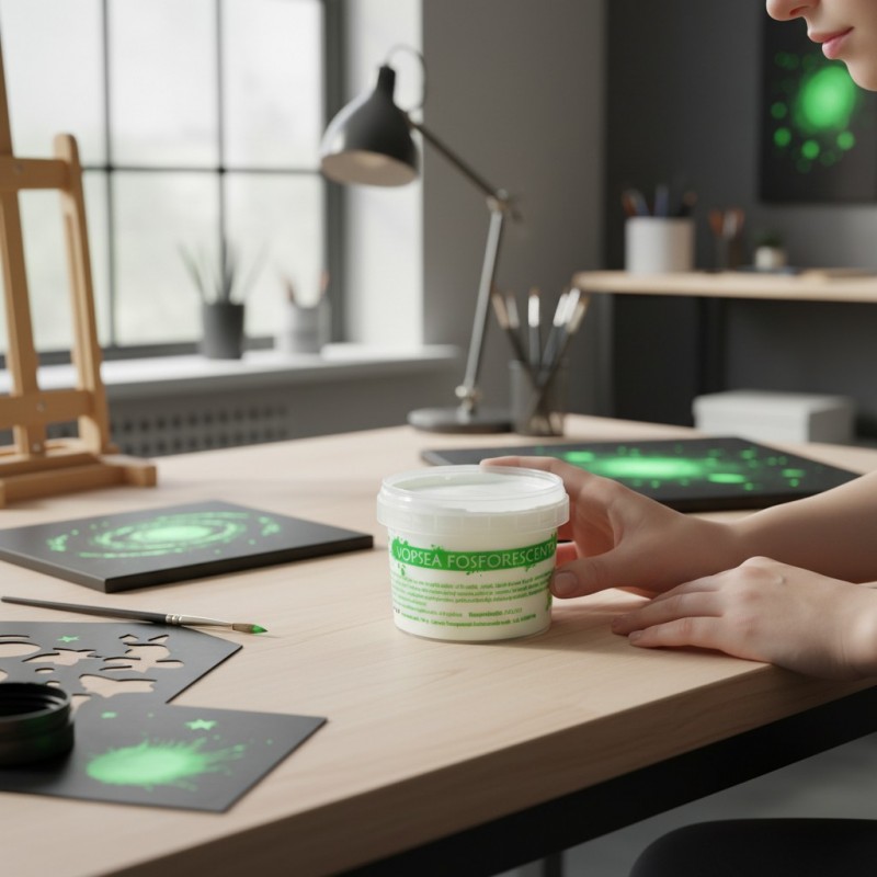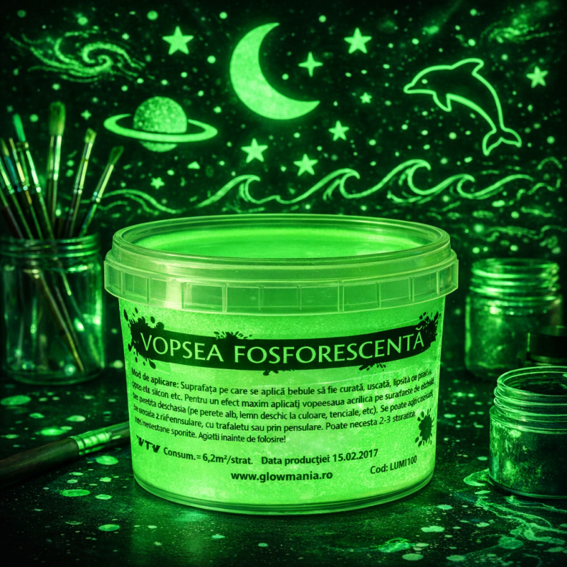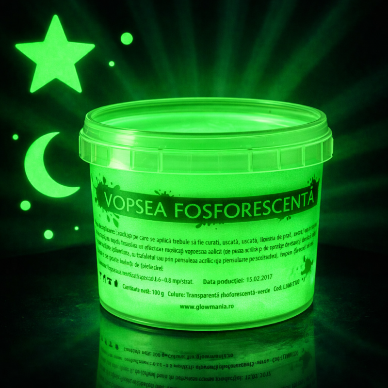 Glow in the dark foszforeszkáló festék, lumineszcens, átlátszó amely világít zöld színben