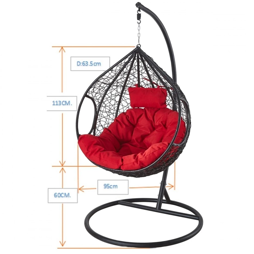 Függesztett hinta szék, acélváz, magasság 197 cm, fekete/piros, maximális terhelés 130 kg, kosár mérete 107 x 95 x 63,5 cm (magasság, szélesség, mélység).