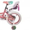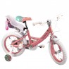 Gyermek kerékpár, 14 hüvelyk, segédkerekek, babaülés, V-fék, láncvédő, rózsaszín egyszarvú