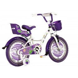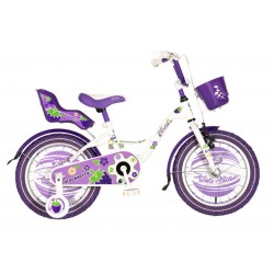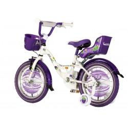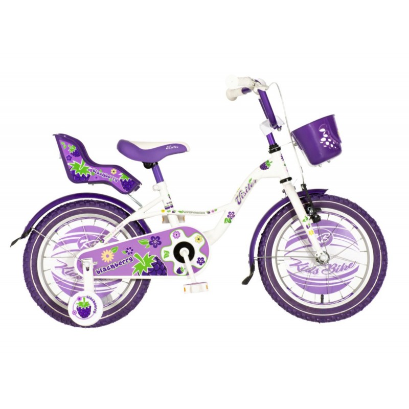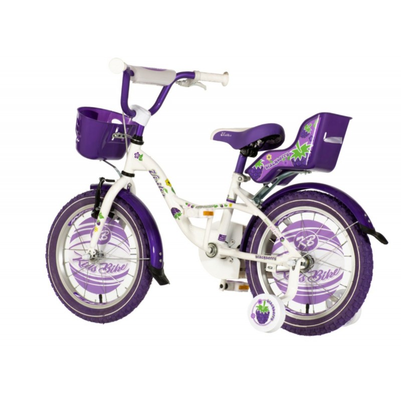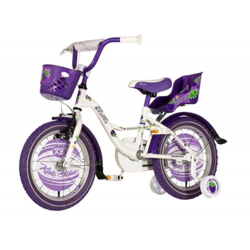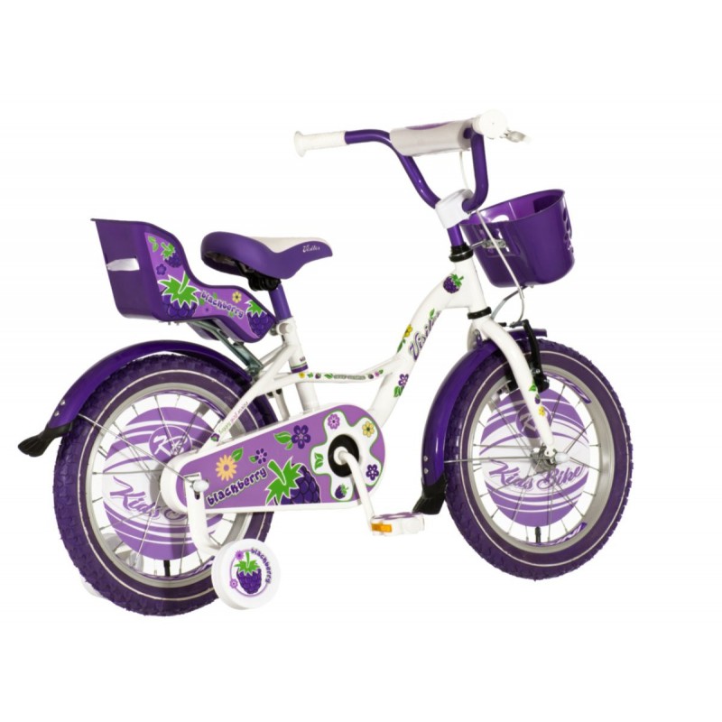 Gyermek kerékpár BLACKBERRY, oldalkerekekkel, babaszékkel, kosárral, lila, 16 colos