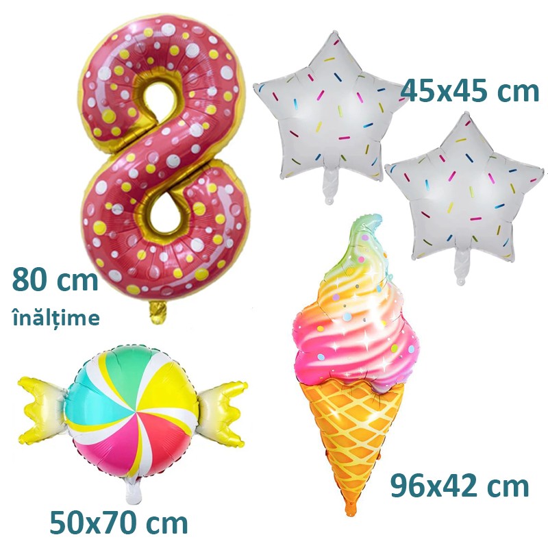 5 db-os lufi készlet, óriás fólia 8-as szám, magasság 80 cm, dekoráció fánk lufi, fagylalt