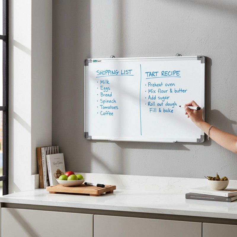 ProCart® mágneses tábla, fehér felület, 45x60 cm-es, alumínium keret, marker tartó