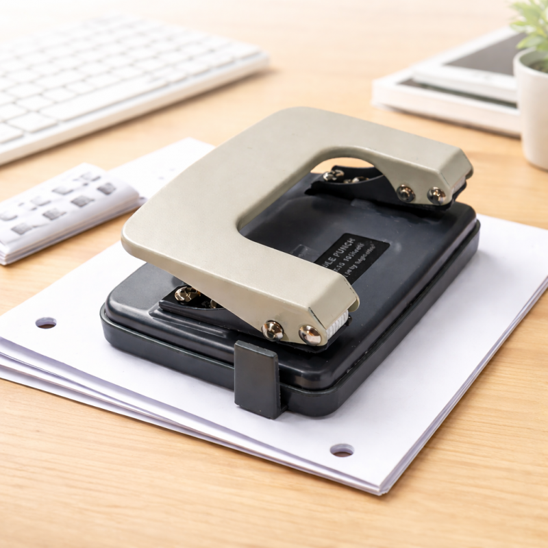 A dokumentumokhoz készült kézi lyukasztó, legfeljebb 10 lap perforálási kapacitással, praktikus eszköz mindennapi használatra irodákban, iskolákban vagy adminisztratív környezetben. Szabványos iratrendezéshez tervezték, ez a modell két pontos lyuk készítését teszi lehetővé, 6 mm-es átmérővel és 80 mm-es tengelytávolsággal, amely kompatibilis a legtöbb iratrendezővel és általánosan használt archiváló rendszerrel.
