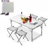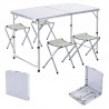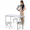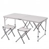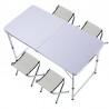 Asztal készlet 4 kempingszékkel, állítható asztalmagasság, csúszásmentes lábak, székméret 27,5 x 32 x 35 cm, az asztal maximális terhelhetősége 40 kg, alumínium, ezüstszínű