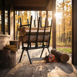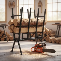 A tartó alkalmas láncfűrésszel vagy más kézi vágóeszközzel történő használatra, hozzájárulva a rendezettebb és biztonságosabb munkafolyamathoz. Praktikus megoldás mindazok számára, akik stabil alátámasztást keresnek tűzifa előkészítéséhez vagy hasonló munkákhoz.