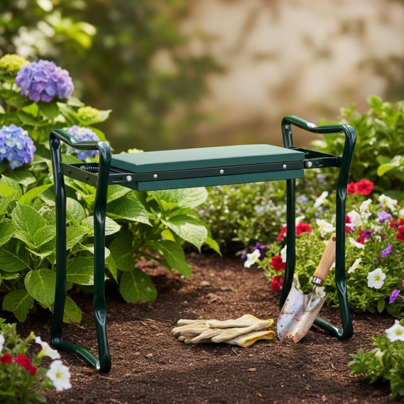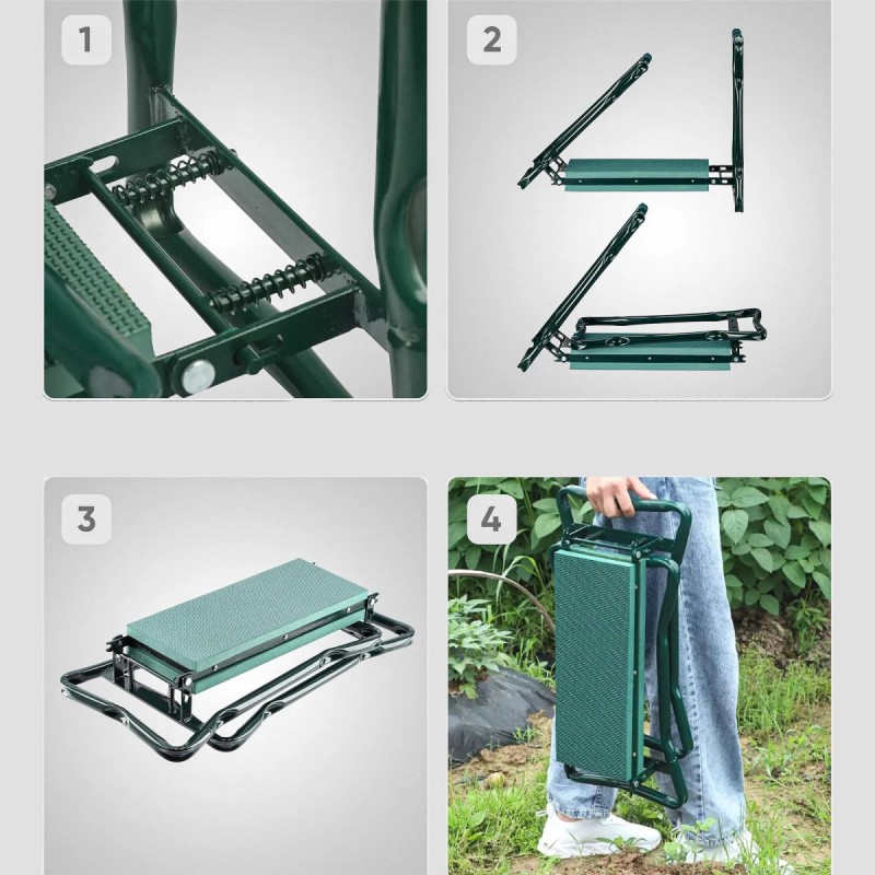 3 az 1-ben kerti szék – Térdeplő, Szerszámtartó, Összecsukható, 150 kg teherbírás