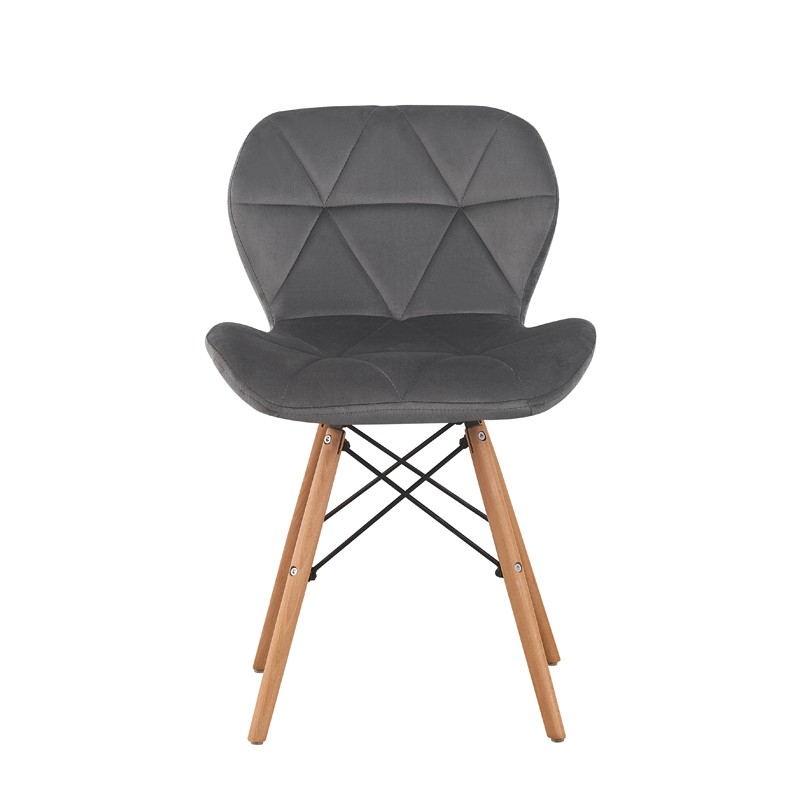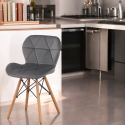 Skandináv stílusú konyhai szék, szürke bársony kárpitozással, fa váz