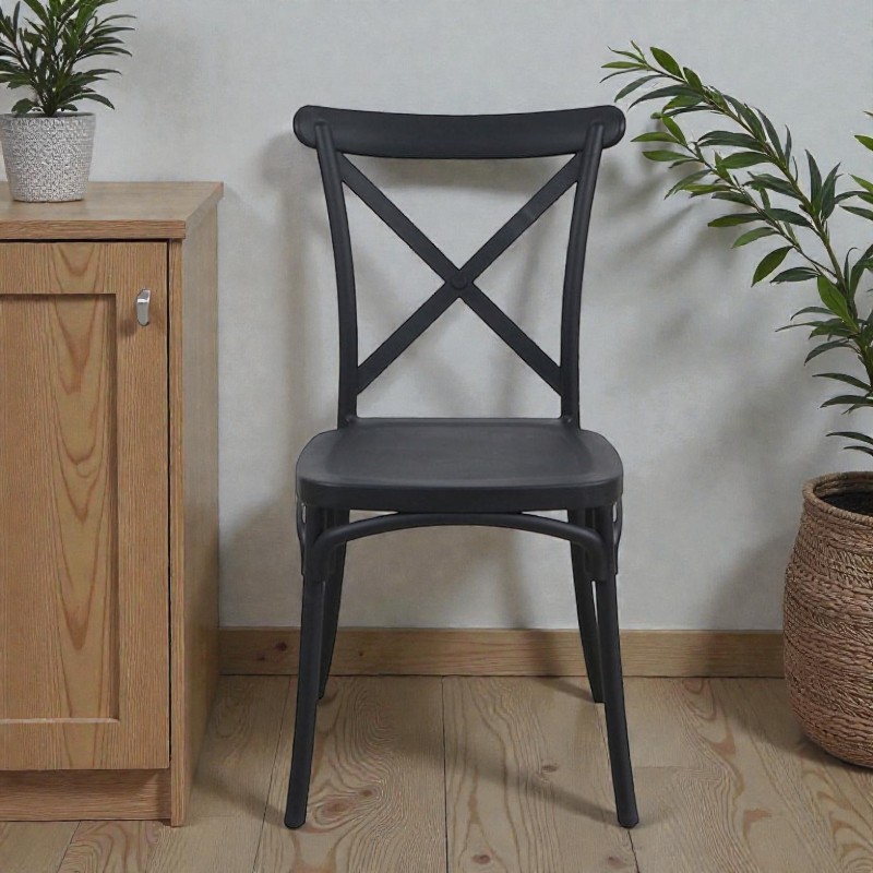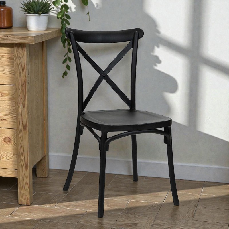 Adjon extra kényelmet és stílust bármely térnek ezzel a klasszikus polipropilén székkel, amelyet úgy terveztek, hogy az eleganciát a modern funkcionalitással ötvözze. Sokoldalú kialakítása tökéletesen illeszkedik konyhákba és kávézókba, valamint kültéri terekbe is, így ideális kertekbe, teraszokra vagy olyan eseményekre, mint a kerti partik és medencés rendezvények. A kifinomult és semleges fekete szín bármilyen berendezéshez jól illik, egységes és elegáns megjelenést biztosítva a használat környezetétől függetlenül