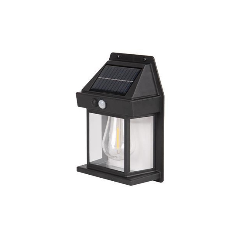 Napelemes LED lámpa, mozgásérzékelő, 8 óra, 3000K, 12 x 5,8 x 17 cm, IP44