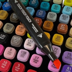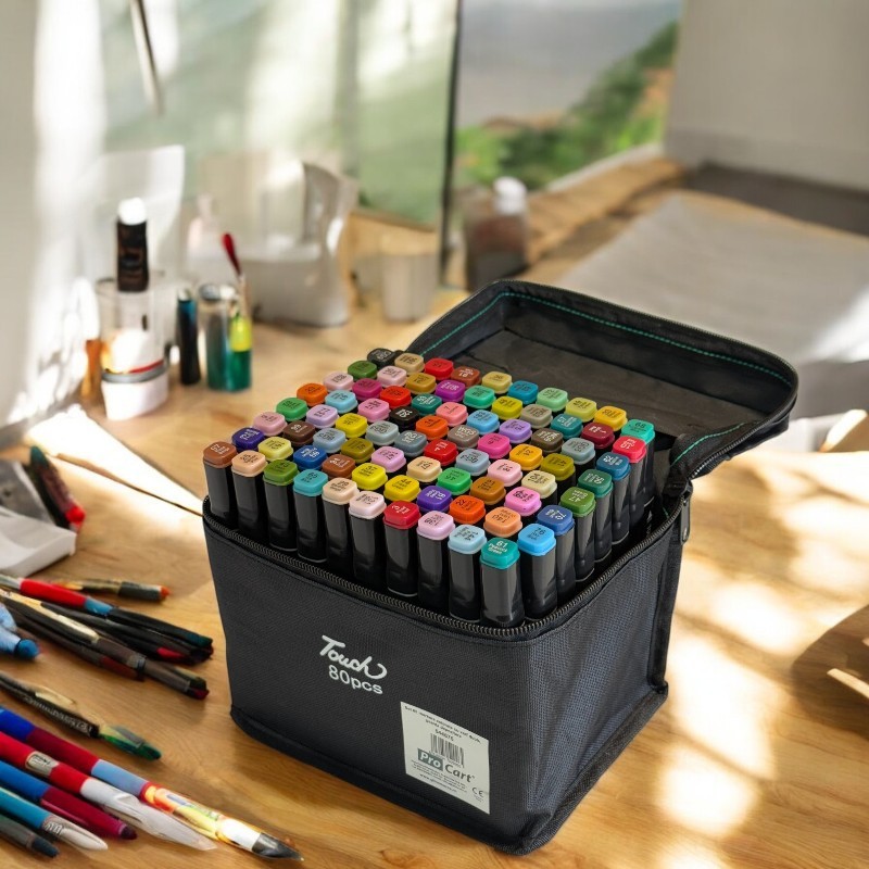 Minden markerhez 2 hegy van ellátva: egy éles és egy széles hegy. A táska lehetővé teszi, hogy rendszerezve tartsa markereit, és magával vigye őket különböző utazásokra.