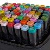 Színes filctoll készlet, dupla hegyű, 80 darab, tárolótasakkal, intenzív és pigmentált színek, nem mérgező, minden kupakra egy szám és egy szín van felírva.