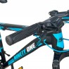 Mountain bike kerékpár, 26 hüvelykes, acél váz, 21 fokozat, tárcsafék, Shimano váltó, 3 hüvelykes gumiabroncsok, fekete-türkizkék színű