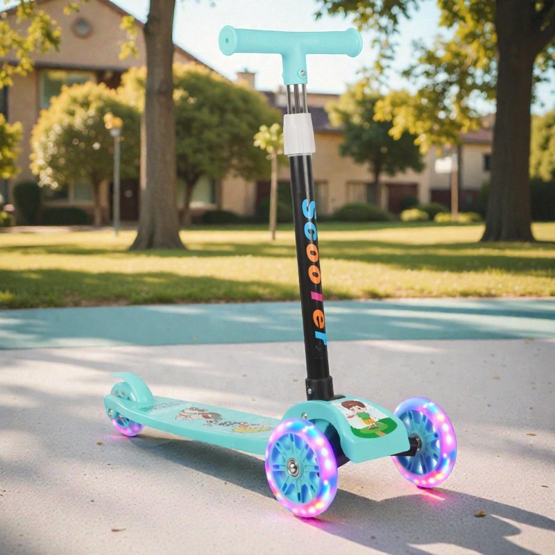 Tegye minden sétát vidám és biztonságos élménnyé ezzel az összecsukható gyermek rollerrel, amely ideális a 3 éves kortól ajánlott kicsik számára. A gyermekek egyensúlyát és kényelmét szem előtt tartva tervezett roller 3 stabil kerékkel rendelkezik, így kezdők számára is könnyű és biztonságos használatot biztosít. A többszínű LED-világítású kerekek mozgás közben látványos fényhatást keltenek, felkeltik a gyerekek figyelmét, és növelik a láthatóságot – mindezt elemek nélkül.