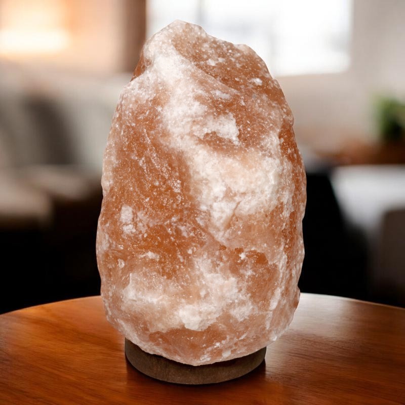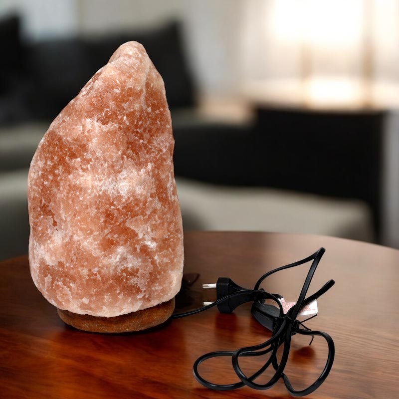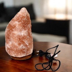 Természetes kialakításának köszönhetően a sólámpa könnyedén illeszkedik modern, rusztikus vagy minimalista enteriőrökbe. A masszív fa talp stabilitást és kifinomultságot ad, kiemelve a termék természetes jellegét. A lámpa kiválóan használható hangulatvilágításként nyugodt estékhez, relaxációs pillanatokhoz, vagy látványos dekorációs elemként.