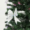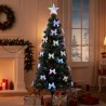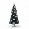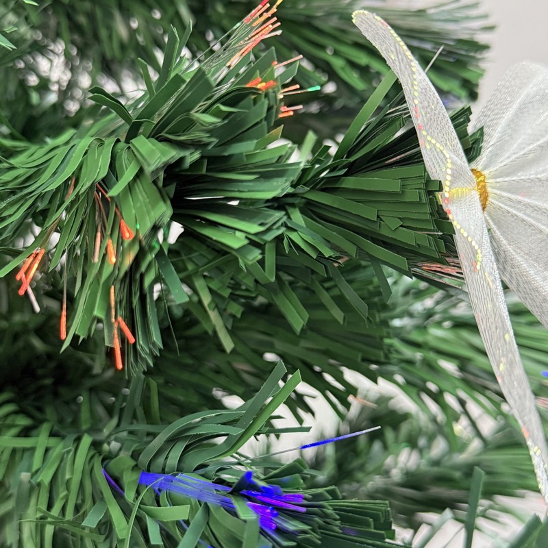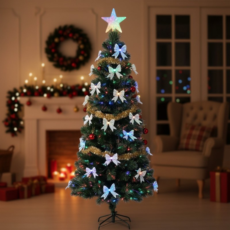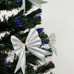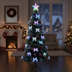 Mesterséges karácsonyfa optikai szállal és masnikkal, 180 cm, csillaggal, színes fényekkel, fém talppal