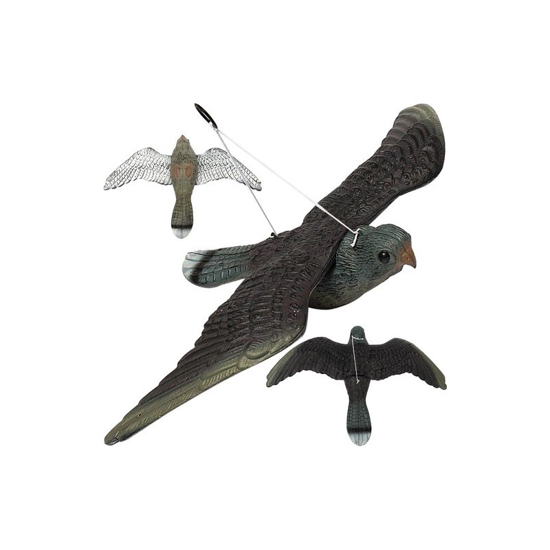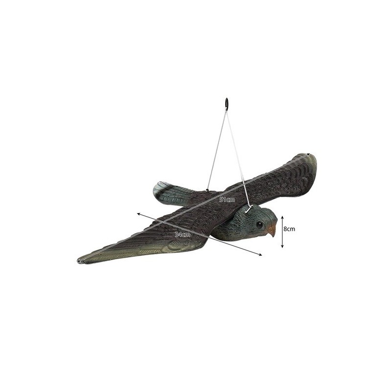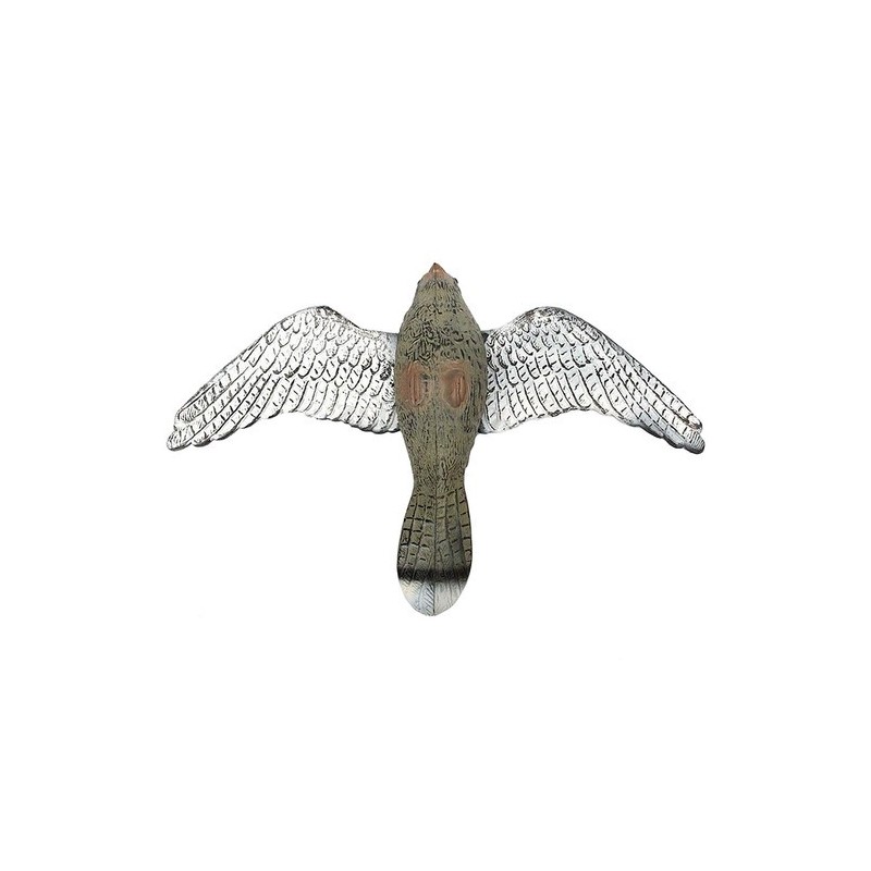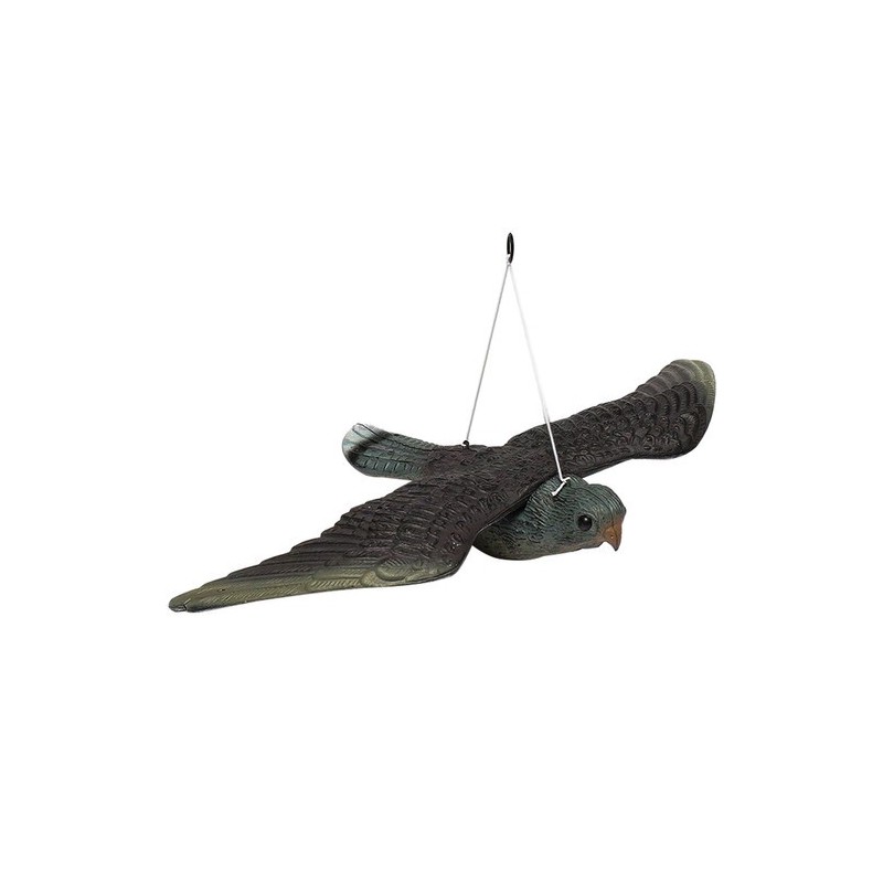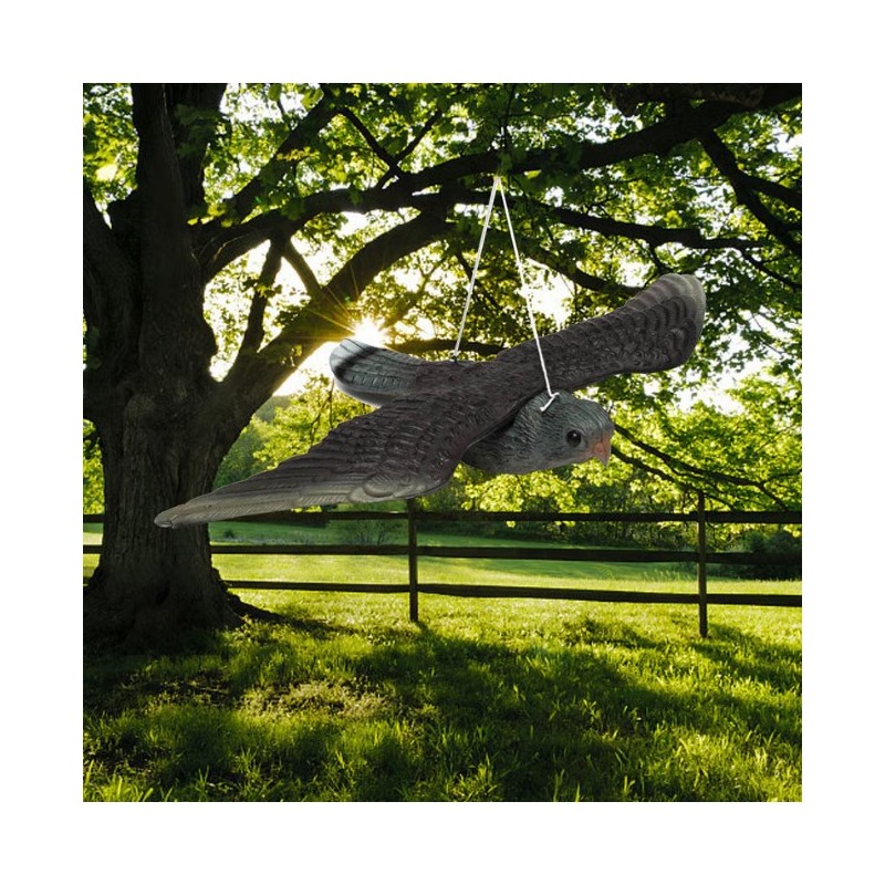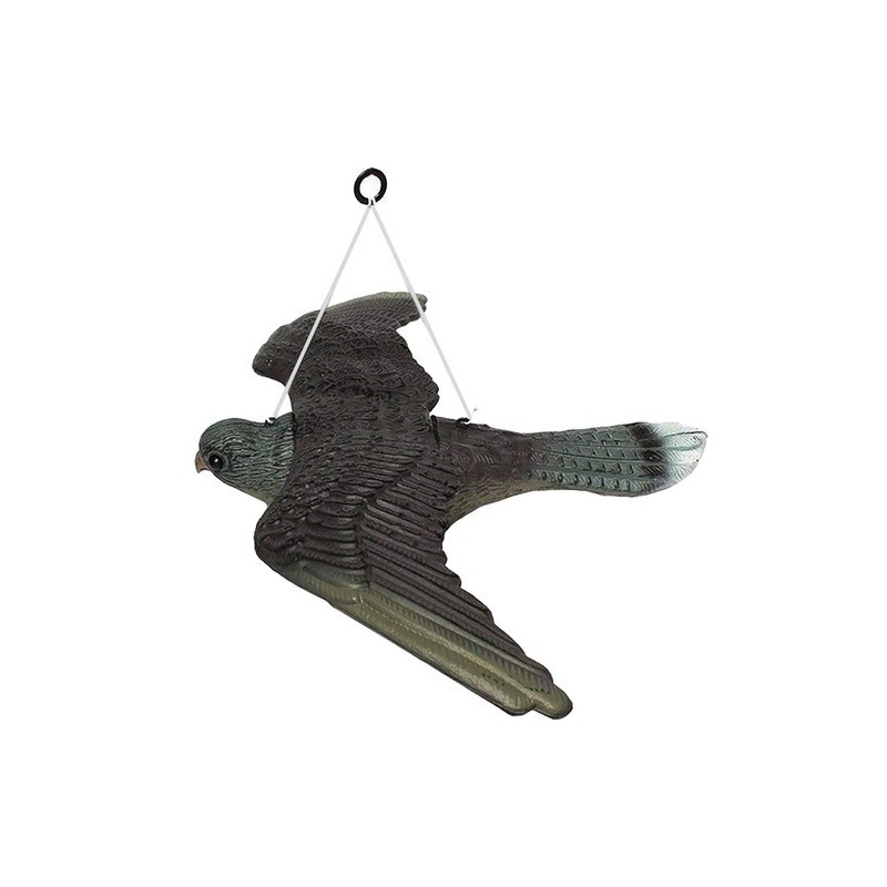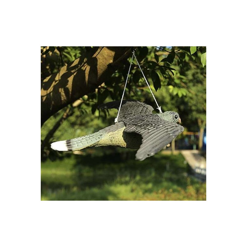 Szabaduljon meg a nemkívánatos madarak okozta problémáktól kertjében, gyümölcsösében vagy erkélyén a sólyommadárijesztő segítségével, amelyet kifejezetten a természetes ragadozók lehető legpontosabb utánzására terveztek. A szárnyakkal, csőrrel és tollazattal ellátott realisztikus dizájn hiteles megjelenést kölcsönöz a figurának, amely azonnal veszélyérzetet kelt a verebek, seregélyek, galambok és más kártékony madarak számára.