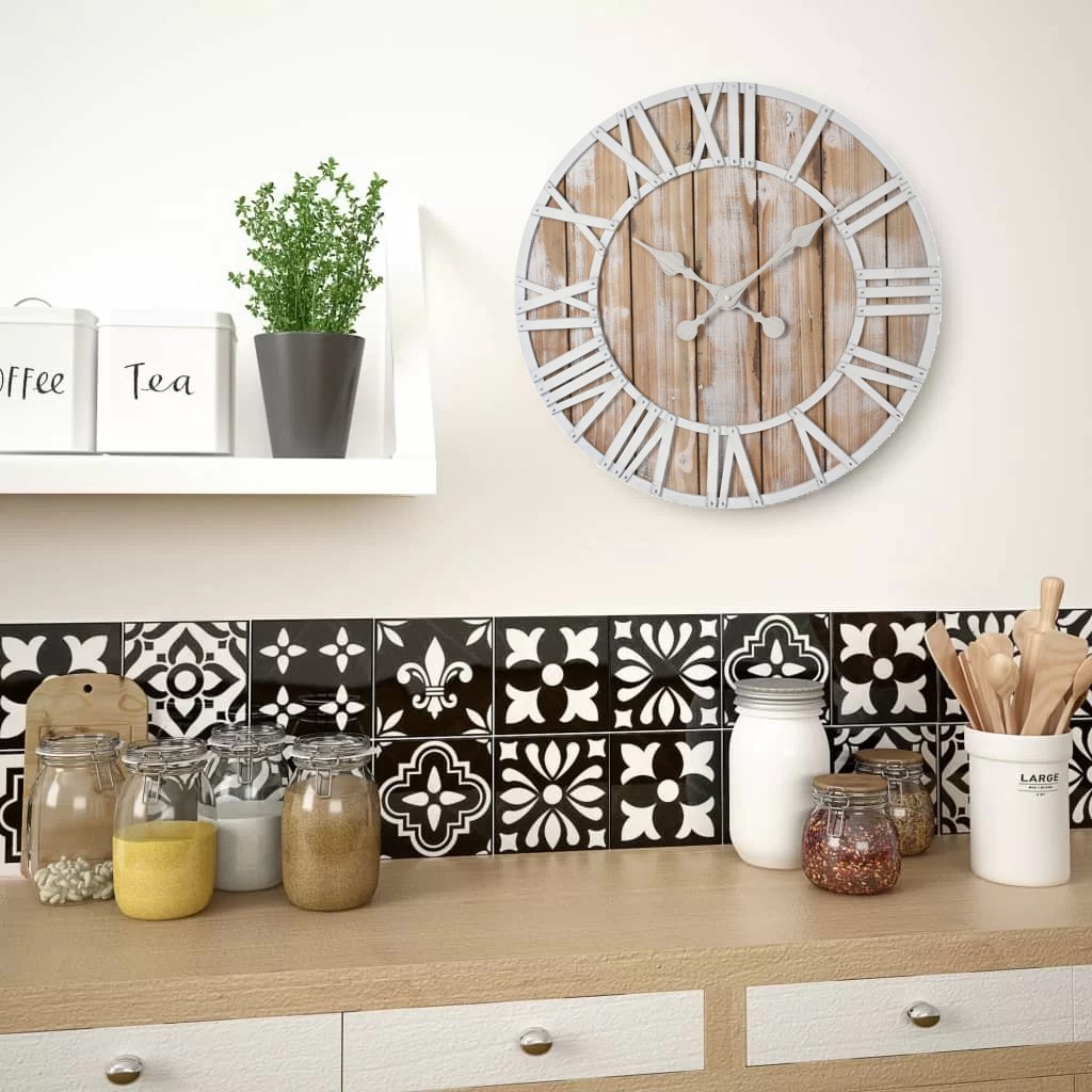 A fából készült falióra vonzó ipari formatervezésű, nagy római számokkal. Nyitott, üveg nélküli kerettel rendelkezik, így különböző szögekből láthatja az időt. Nagyszerű választás irodába, nappaliba, előszobába. Az óra egy AA elemmel működik.